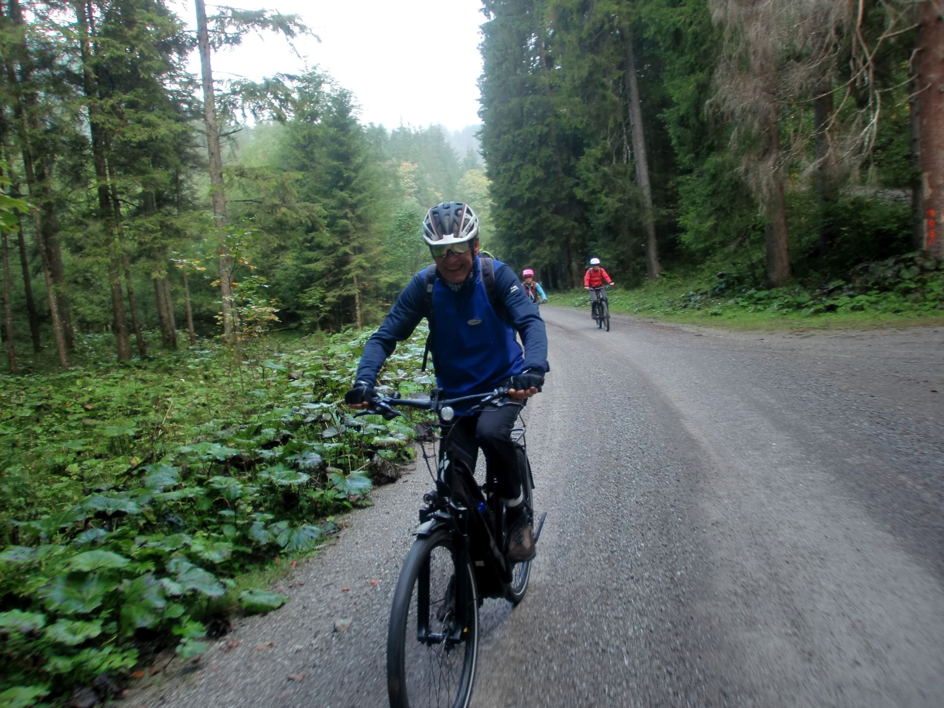 Das Wetter hat es gut gemeint, es war entlang der ca. 25 km bis Ehrwald aber noch oft angenehm schattig. Nach Ehrwald hinein und in Ehrwald sind wir einmal eine alternative Strecke gefahren, die sogar einen "plattierten Singletrail" enthielt.
