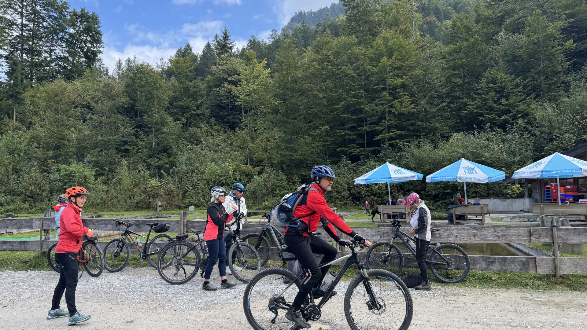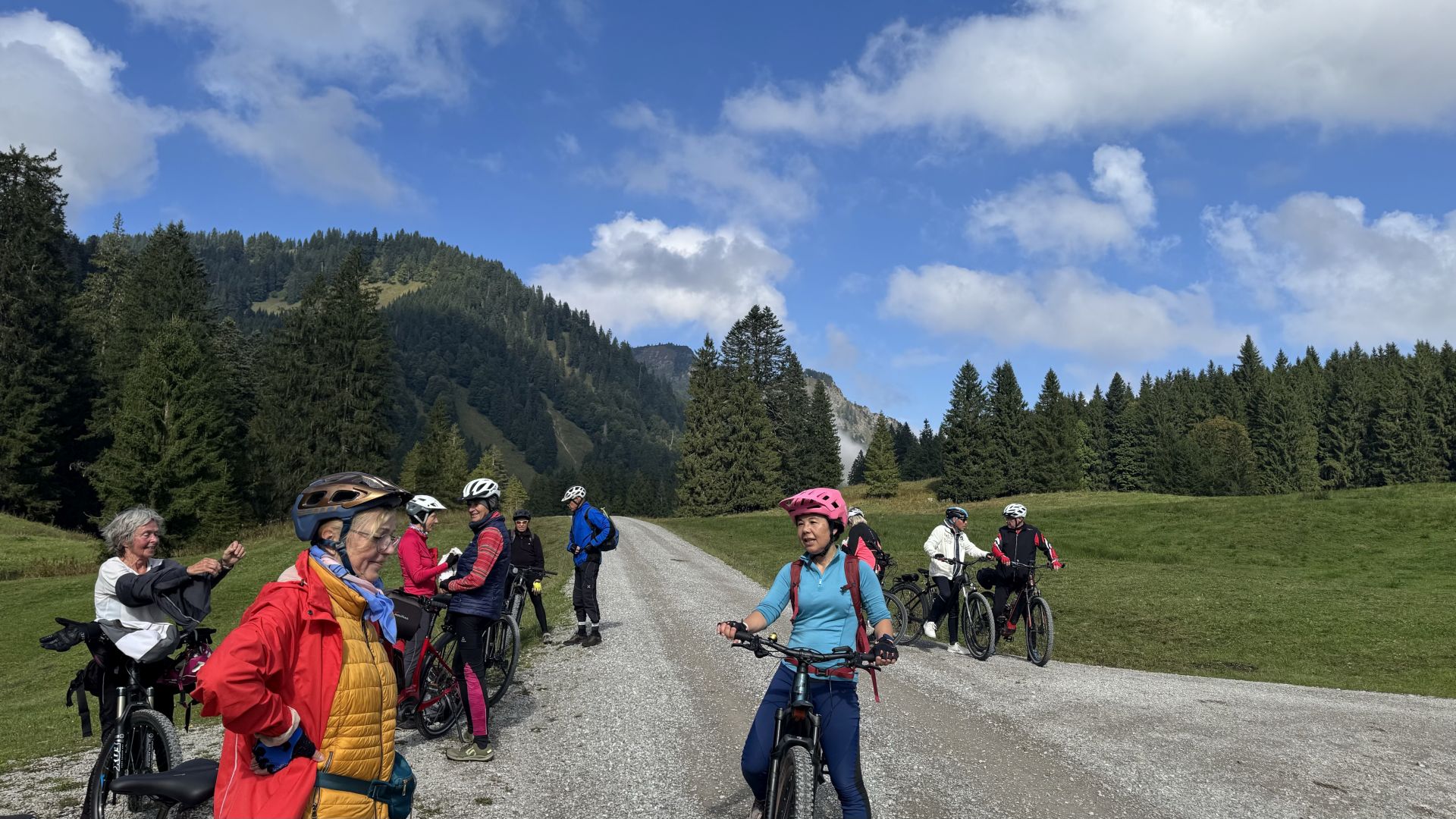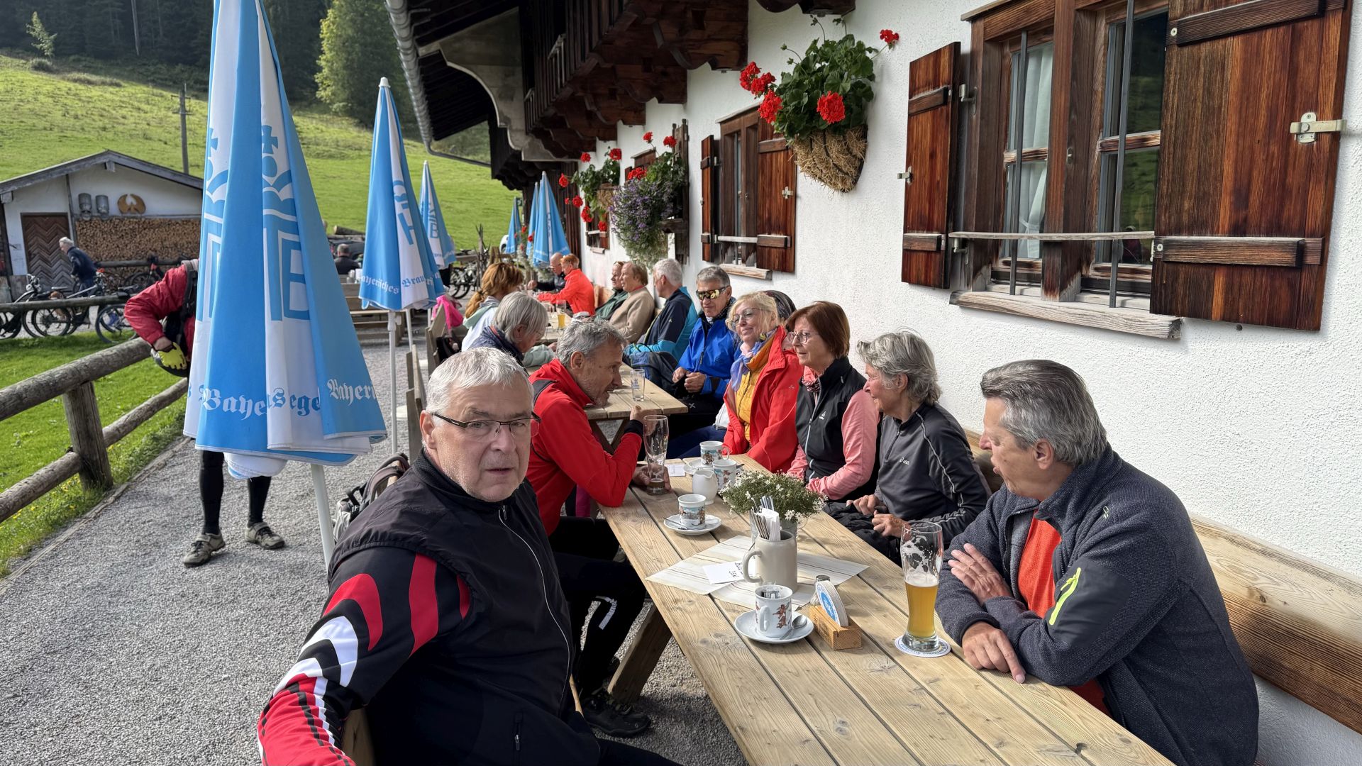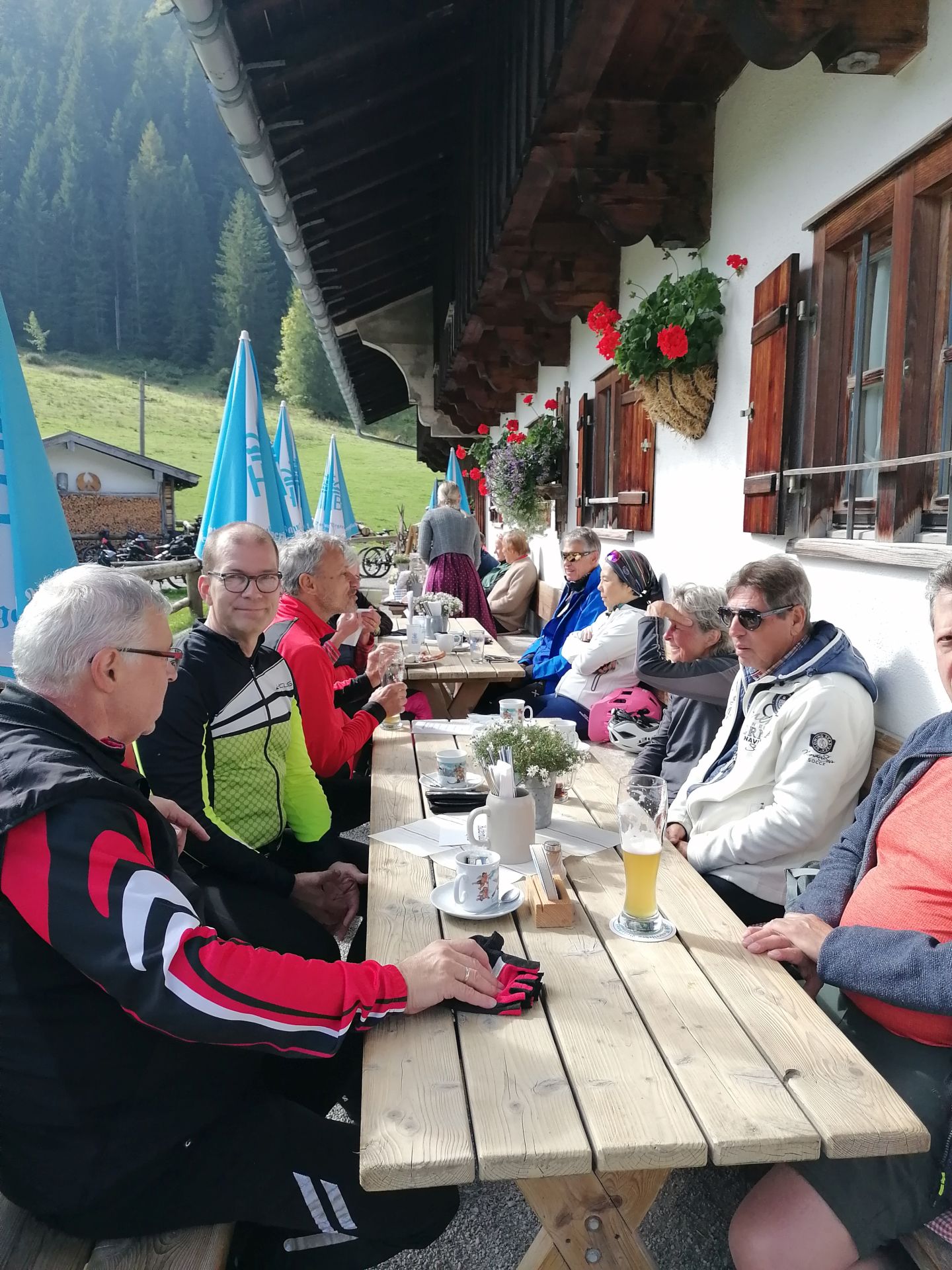 Genau zum Sonntag ist es nochmal Sommer geworden, und so sind wir mit insgesamt 16 Radlern und Radlerinnen gegen 10:00 ab Bad Kohlgrub zur Wieskirche gestartet.