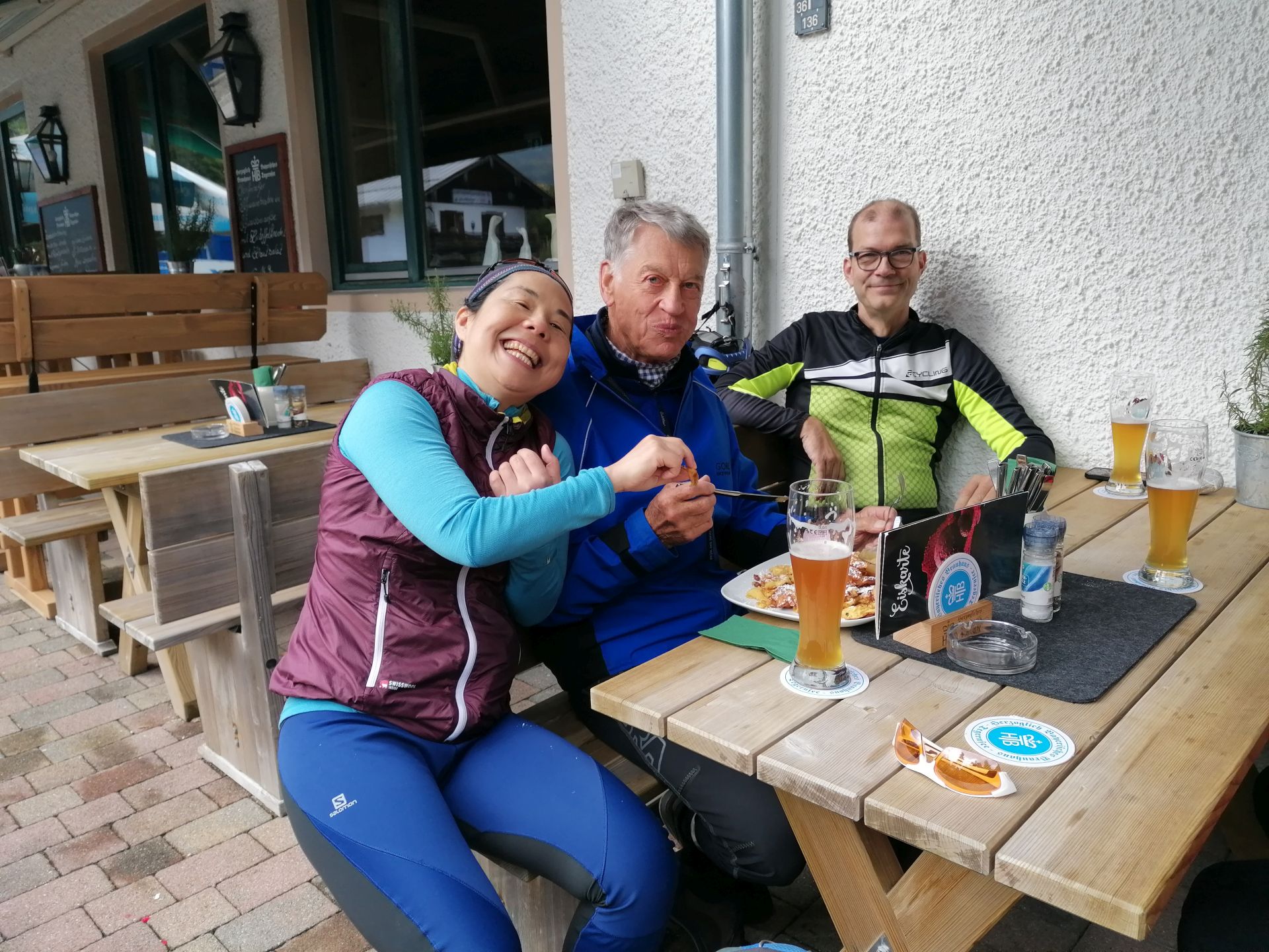 Nach der Pause sind wir zum Kirchsee geradelt, einige von uns sind im See geschwommen. Die Temperatur des Moorsees war sehr angenehm warm. Nach der Erfrischung im See fuhren wir an diesem weiter bis nach Kirchbichl. Von da an geht’s bis Unterleiten fast nur noch bergab.