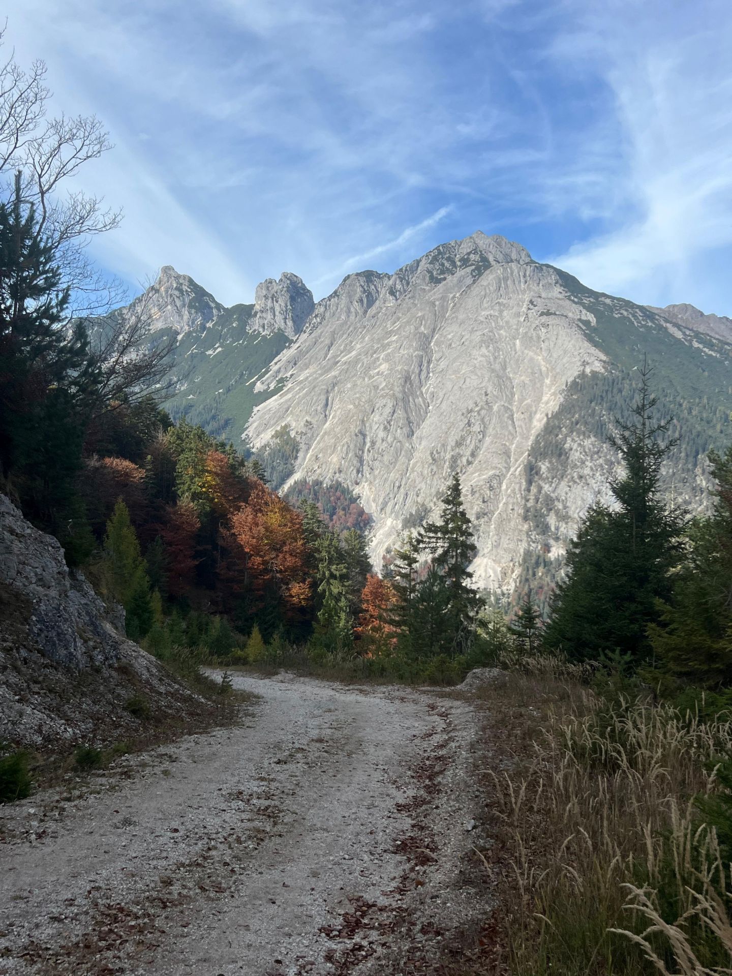 Eine Stunde früher als geplant, nämlich um 7:00 Uhr machten wir uns, 12 NF, auf den Weg nach Scharnitz, um eine herbstliche Wanderung um den Zunterkopf und auf den Zäunlkopf zu unternehmen. Die zwei Berghügel liegen südlich von Scharnitz mit schönem Panorama auf das Karwendel- und Wettersteingebirge.