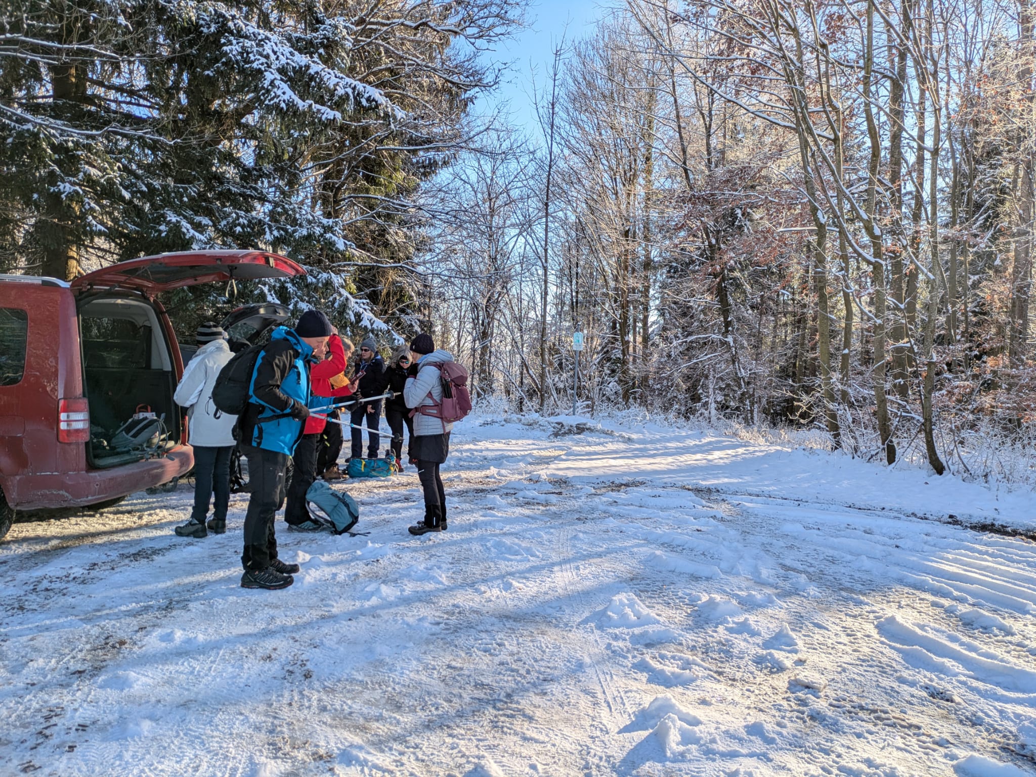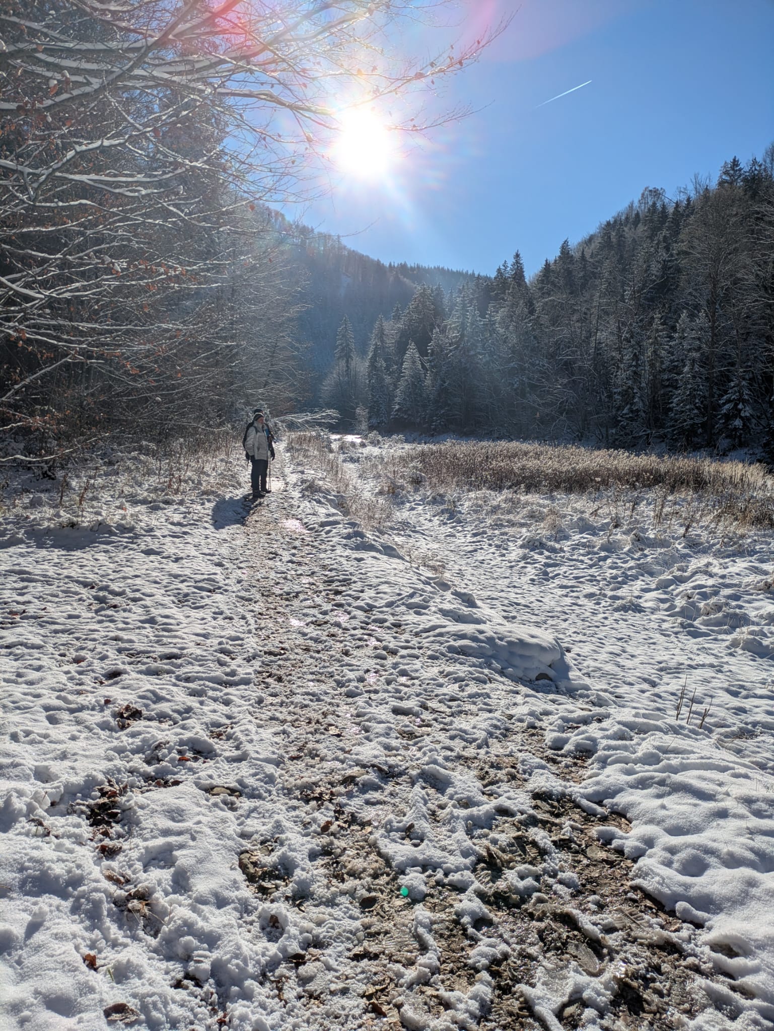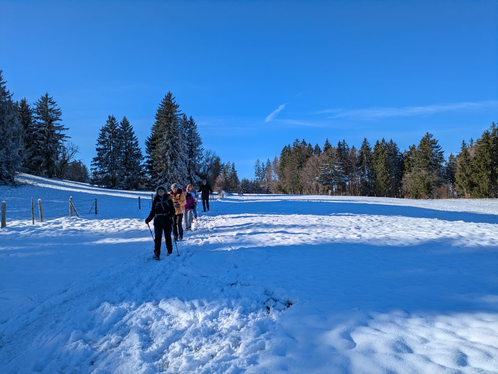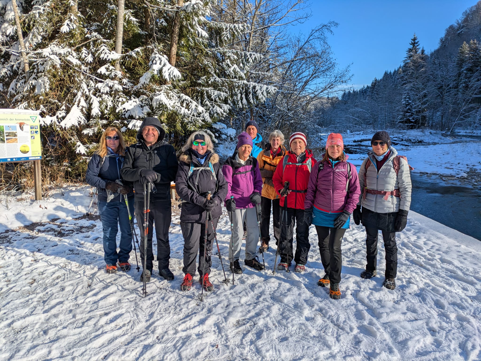Die Fahrt unserer 10-köpfigen Wandergruppe nach Peiting war bereits ein Erlebnis. Der Schnee glitzerte wie im Märchen, blauer Himmel, Sonnenschein, Bergblick und winterliche minus 10-12 Grad.