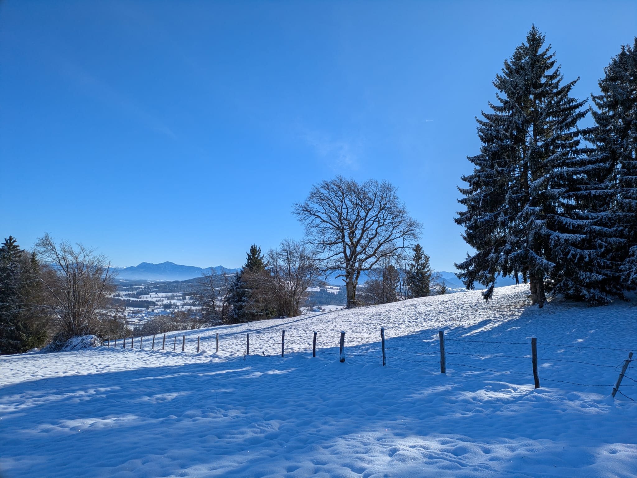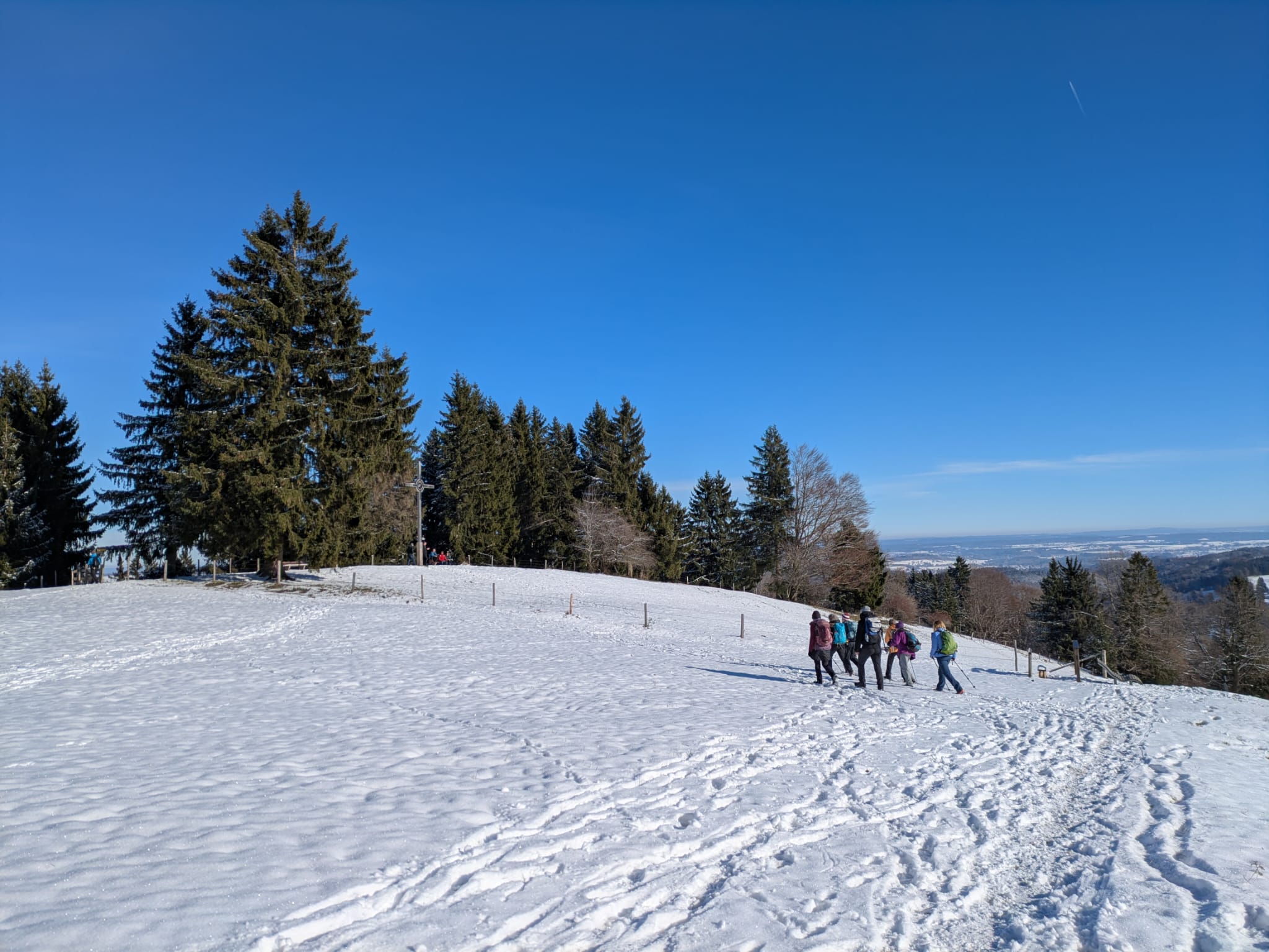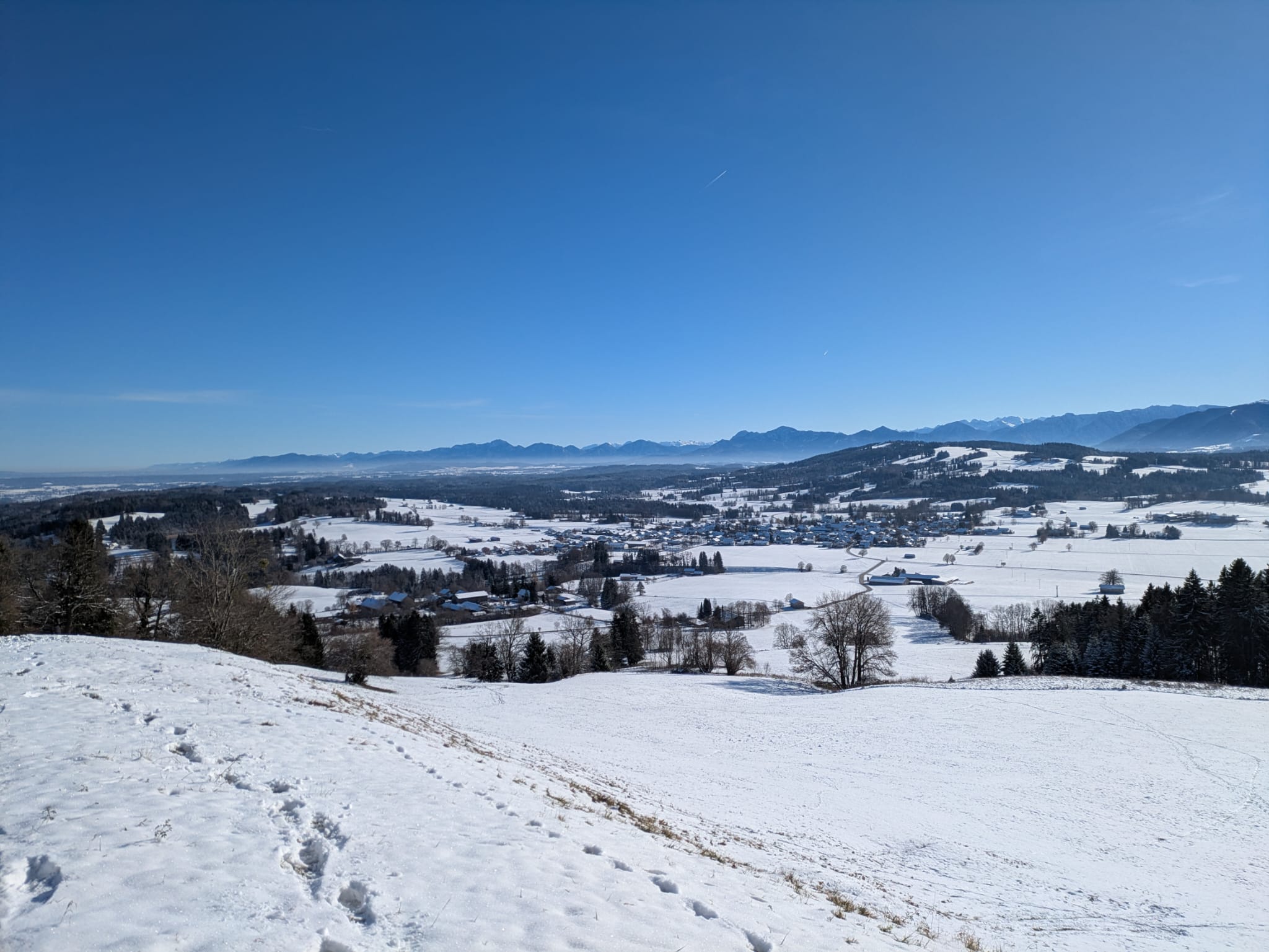 Als Abschluß in der wunderbaren verschneiten Landschaft kehrten wir auf dem Hohenpeissenberg mit rund um Blick und vielen Schlittenfahrern beim Bayerischen Rigi ein. Eine zauberhafte Wanderung!