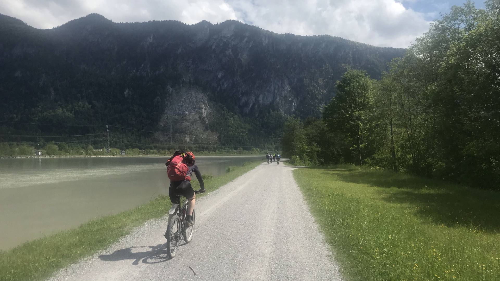 Los ging es bei noch stark bewölktem Himmel und relativ kühlen Temperaturen am Bahnhof Kiefersfelden, von wo aus wir zunächst dem Inn flussabwärts folgend Richtung Oberaudorf gefahren sind zum Einradeln.