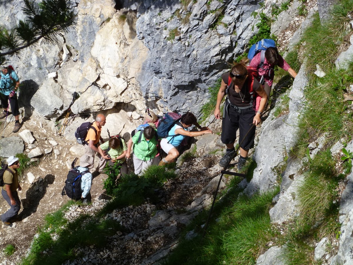 Gleich hinter dem Friedhof starteten 17 Naturfreunde(innen) zu dieser Wanderung. In Serpentinen schlängelte sich der Weg durch den Wald und gewann rasch an Höhe. Als der Wald zu Ende war und man langsam das Gelände in die Hände nehmen musste (klettern) blieben vier Naturfreunde(innen) in einem Unterstandshäuschen zurück. Unbestätigten Berichten zur Folge sollen sie dort Karten gespielt haben.