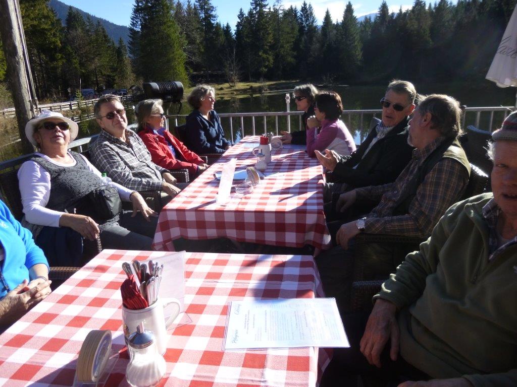 Dort, wo die Bernsteinhändler aus dem Ostseeraum vor ungefähr 3.000 Jahren einen Pfad durch die Sümpfe und den Urwald des Zugspitzlandes traten, wo vor 2.000 Jahren die Römer in technischer Meisterleistung eine Heer- und Handelsstraße erbauten, wo die Adelsgeschlechter der Andechser und Werdenfelser zum Schutz des Tales ihre Burgen errichteten, wo Bischöfe die Landesherren waren und durch die Klöster Benediktbeuern, Ettal, Schlehdorf, und Polling zu Landbesitz kamen. Wo Flößer Holz, Gips, Kalk und Vieh auf ihren Floßen bis Wien und Budapest transportierten, Handelsniederlassungen gründeten und den Wohlstand ins Land brachten. dort entstand das „Goldene Landl". Genau dort waren wir unterwegs, 21 Naturfreunde, bei herrlichstem Sonnenwetter und in bester Stimmung. Aufstieg von Farchant, der Grubenkopf wurde umgangen, dann Reschbergwiesen und Pflegersee zum Gasthaus, wo Sonnenplätze für uns reserviert waren. Nach zwei Stunden in der Sonne bei Bier und gutem Essen kam der Kommentar von Rudi: „Solche Bergtouren könnten wir jede Woche machen". Abstieg zur Ruine der Burg Werdenfels, wieder in vollem Sonnenschein. Brunhild wurde zum Burgfräulein. Dann Heimfahrt auf der Heerstraße Richtung München.