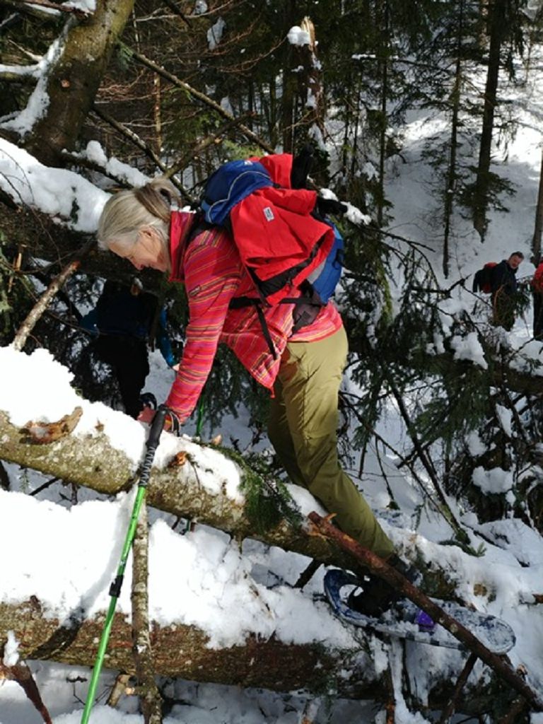 noch ein Gipfelkreuz und liefen durch den Wald und kletterten über umgefallene Bäume wieder in