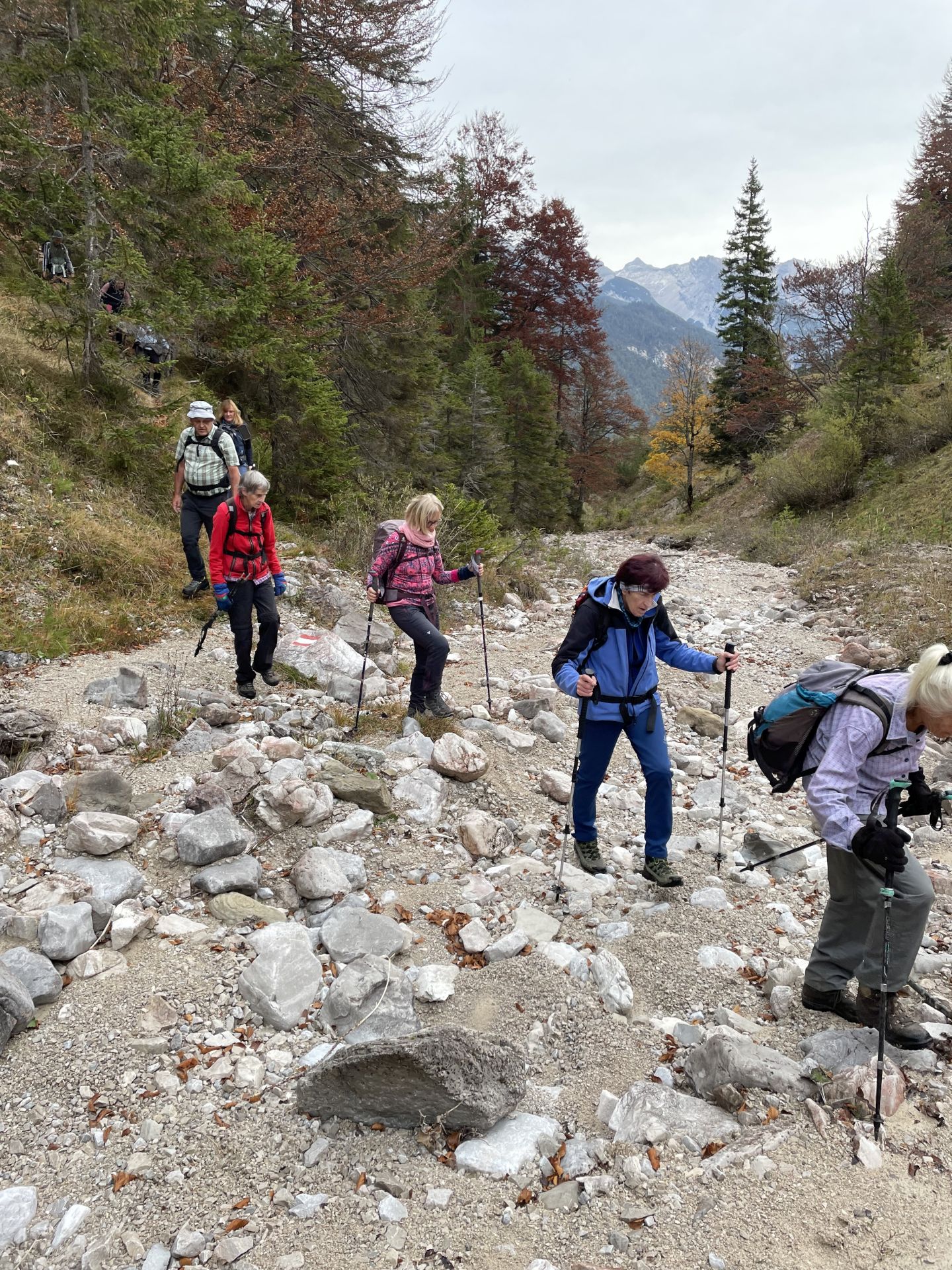 Eine Stunde früher als geplant, nämlich um 7:00 Uhr machten wir uns, 12 NF, auf den Weg nach Scharnitz, um eine herbstliche Wanderung um den Zunterkopf und auf den Zäunlkopf zu unternehmen. Die zwei Berghügel liegen südlich von Scharnitz mit schönem Panorama auf das Karwendel- und Wettersteingebirge.